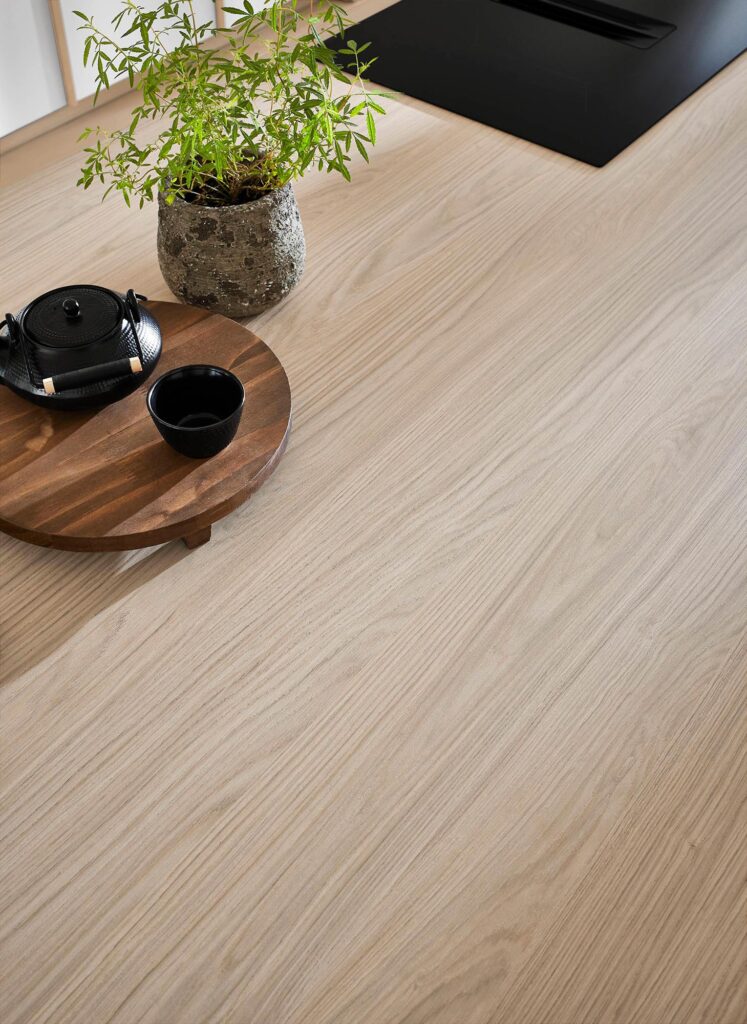 Et lyst, matt eikegulv skaper den rolige og naturlige basen som kjennetegner Japandi – hvor enkelhet, varme og balanse står i fokus.