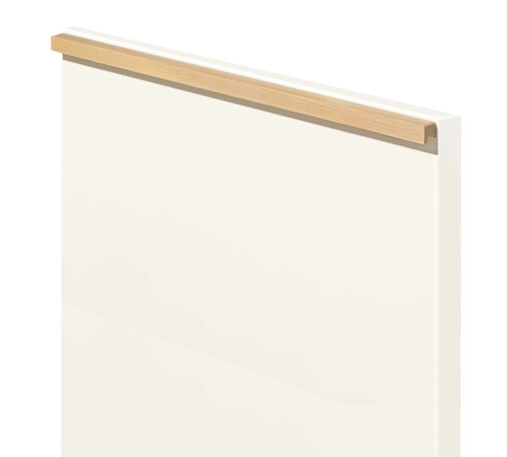 For å forsteke Sakura-stilen anbefales håndtak i samme eikeutførelse som rammer og benkeplate. Håndtak Como Eik 315.