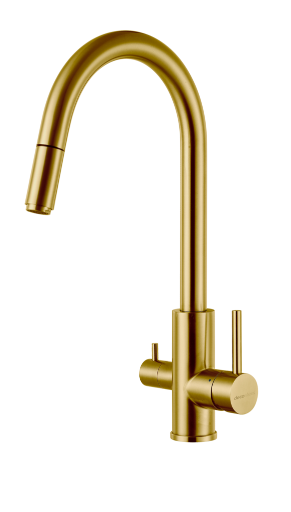 kombinert med et blandebatteri i gull. Blandebatteri Deco Royal.